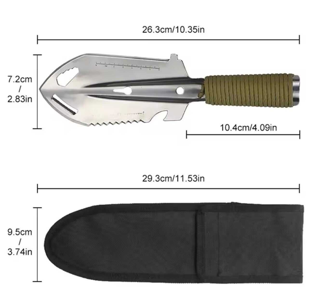 Outil polyvalent: Conçu pour l'extérieur avid, cette pelle multifonctionnelle sert à divers fins.Il peut être utilisé pour le creuser, le découper, le sciage et uniformément comme pagaie de déchaut, le fait un outil indispensable pour le camping, la randonnée et les situations de survie.